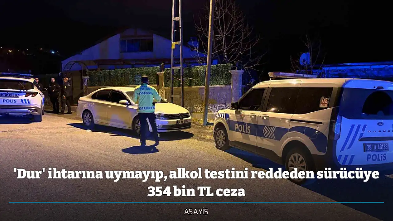 'Dur' ihtarına uymayıp, alkol testini reddeden sürücüye 354 bin TL ceza