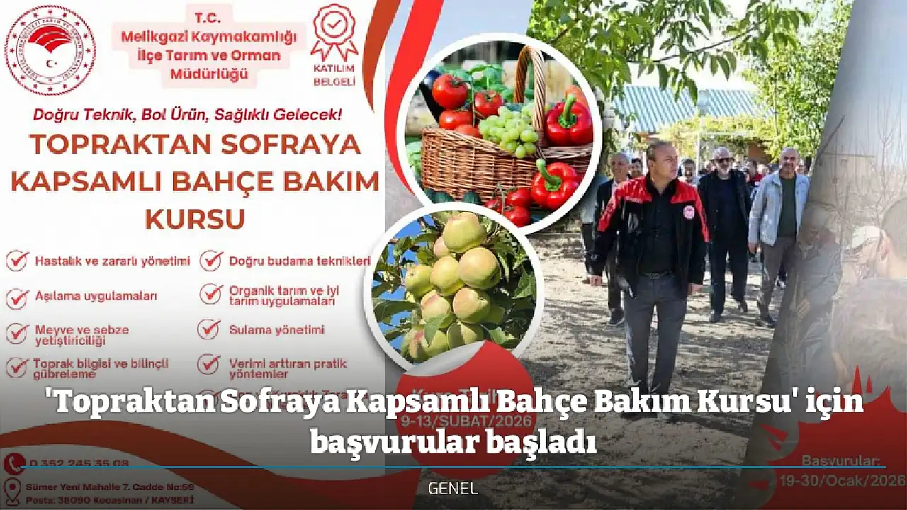 Melikgazi İlçe Tarım ve Orman Müdürlüğü'nün 'Topraktan Sofraya Kapsamlı Bahçe Bakım Kursu' ismiyle düzenleyeceği kursun başvuru süreci başladı.