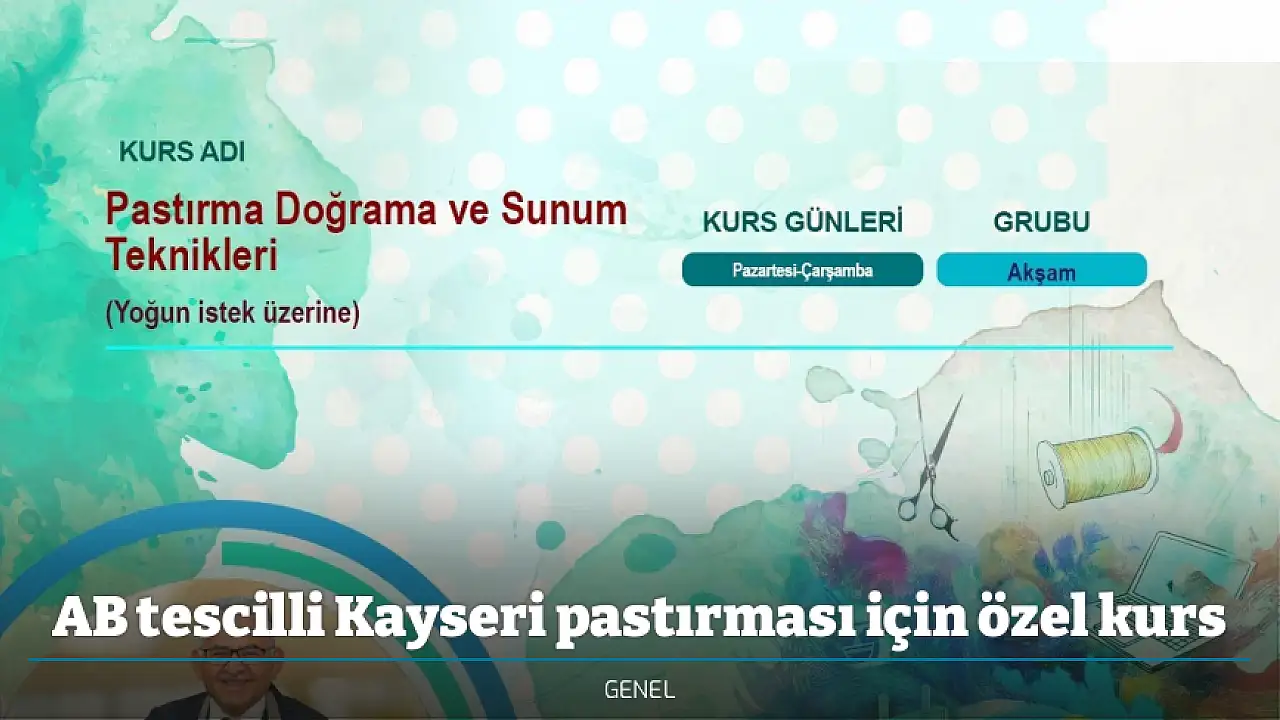 Kayseri Büyükşehir Belediyesi bünyesinde hizmet vermekte olan Kayseri Mesleki Eğitim ve Kültür A.Ş. (KAYMEK) aracılığı ile ilgi gören, şehrin Avrupa Birliği'nden coğrafi tescilli ve kadim değeri pastırmanın doğrama ve sunum tekniklerine ilişkin kurs düzenleyecek. Bu özel ve ücretsiz kursun kayıtları başladı.