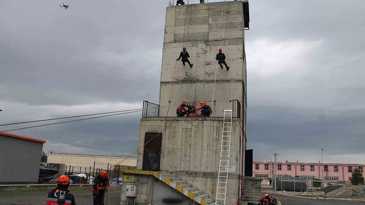 AFET ve Acil Durum Yönetimi Başkanlığı (AFAD) Kayseri İl Müdürlüğü ile Organize Sanayi Bölgesi (OSB) İtfaiye Müdürlüğü iş birliğiyle kayadan düşme ve yaralanmalarda yapılacak müdahaleler için eğitim düzenlendi.