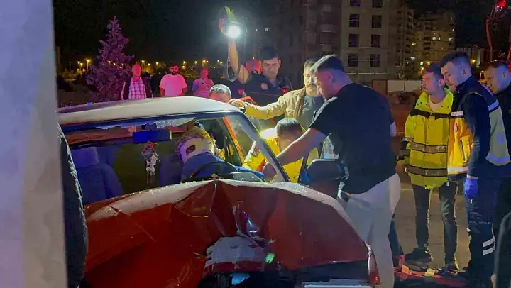 Aydınlatma direğine çarpan sürücü otomobilde sıkıştı: 3 yaralı