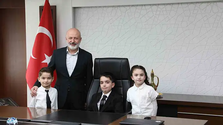 Mehmet Tarman Ortaokulu 6. sınıf öğrencisi Eymen Karakaş, Hacı Ömer Ayten Tepecik İlkokulu 2. sınıf öğrencisi Mina Karakaş ile anasınıfı öğrencisi Göktuğ Şimşek'i misafir eden Başkan Çolakbayrakdar, onlarla tek tek ilgilendi. Öğrencilerle sohbet eden Başkan Çolakbayrakdar, makam koltuğunu Eymen Karakaş'a teslim etti. Başkanlık makamına oturan öğrenci Eymen Karakaş, Park ve Bahçeler Müdürlüğünü arayarak ilçeye yeni bir park yapılması talimatını verdi. Eymen Karakaş, mevcut 722 parkın sayısının 723'e çıkarılmasını isteyerek çevreye ve oyun alanlarına verdiği önemi ortaya koydu. Programın bir diğer minik konuğu olan anasınıfı öğrencisi Göktuğ Şimşek ise okuduğu İstiklal Marşı ile gururlandırdı.