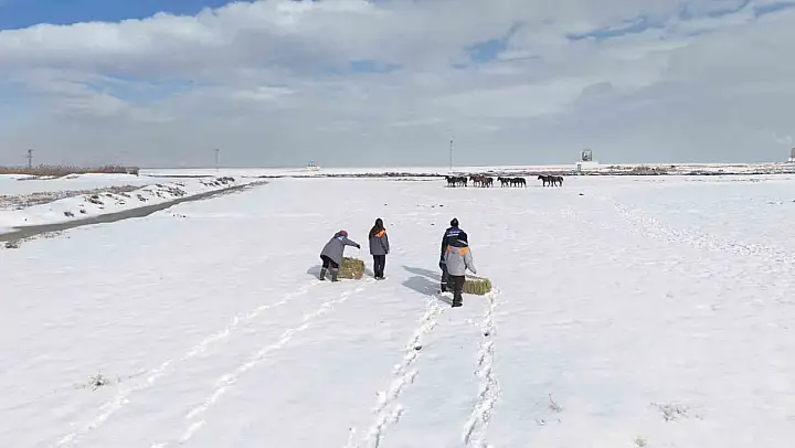Yoğun kar yağışının etkili olduğu Kayseri'de Büyükşehir Belediyesi ekipleri, farklı bölgelerde gerçekleştirdikleri çalışmalarla kış şartlarında güvercin, kedi, köpek ve yılkı atlarına, yem ve mama ulaştırdı.