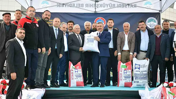 Kayseri Büyükşehir Belediye Başkanı Dr. Memduh Büyükkılıç; Kayseri'de tarımsal üretimi artırmak ve atıl arazileri ekonomiye kazandırmak amacıyla yürütülen proje kapsamında, 19 milyon TL'yi aşan 360 ton tohumu yüzde 50 hibe desteğiyle düzenlenen törenle çiftçilere dağıttı. Tören kapsamında ayrıca bakanlık tarafından 300 ton tohum dağıtımı da gerçekleştirildi.