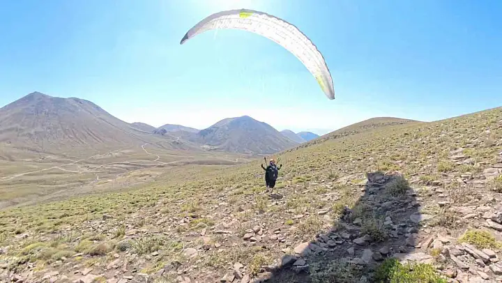 Kayseri'de yamaç paraşütü pilotları Muhammet Emin Gürpınar ve Efe Şimşekliler bir ilki gerçekleştirdi. Erciyes'in eteklerinde bulunan Kızılören Mahallesi'nden motorla Sarıgöl Yaylası'na ulaşan pilotlar, eşeklere yükledikleri paraşütlerini buradan 2 bin 500 metre rakımdaki Yılbant Tepesi'ne ulaştırdı. Buradan havalanan ikili, 3 bin 917 rakımlı Erciyes Dağı'nın 3 bin 500 rakımına ulaşarak yeni bir uçuş alanı kazandırmak için hedeflerine ulaştı.