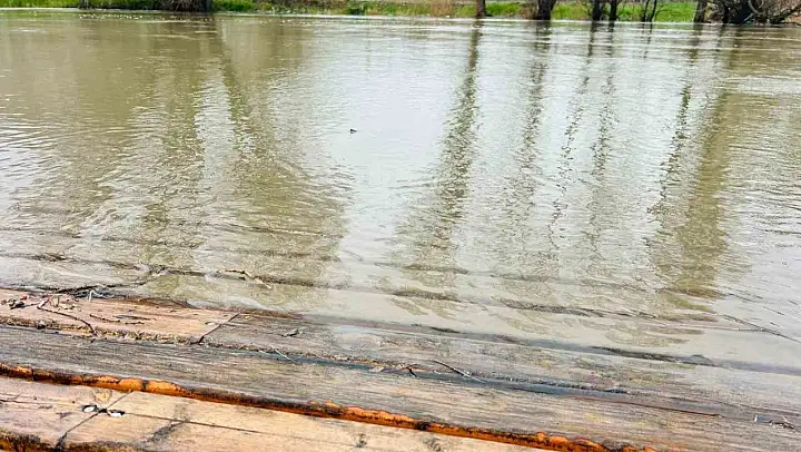 Karların erimesi ve artan su seviyesi nedeniyle ırmak çevresindeki alanlarda su baskınları oluşurken, ortaya çıkan görüntüler taşkının boyutunu gözler önüne serdi.
