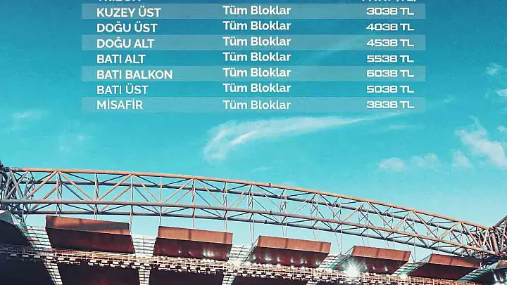 Doğu Üst tribün tüm bloklar: 4 bin 38 TL