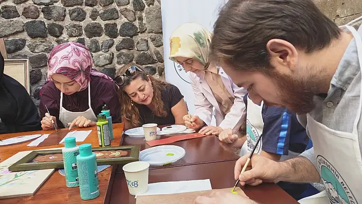 KAYMEK Kent Atölyeleri'nde düzenlenen çalışmaya katılan kursiyerler, tezhip sanatının da yan alanı olan Edirnekari ile geleneksel Türk süsleme sanatı yaparak motifleri deri üzerine işledi. Çalışma hakkında bilgiler veren KAYMEK Kent Atölyeleri Tesis Sorumlusu Burcu Kara, 'KAYMEK, çeşitli kurs ve Workshop'lar ile Kayseri genelinde faaliyetlerine devam ediyor. Bugün de KAYMEK Kent Atölyeleri Şubesi'nde bulunuyoruz. Deri üzerine Edirnekari Workshop uygulaması yapacağız burada tezhip eğitmenimiz rehberliğinde. Edirnekari; tezhipin de bir yan alanı olan geleneksel Türk süsleme sanatlarından bir tanesidir. Bugün de katılımcılarımız deri üzerine geleneksel çini ve tezhip motiflerinden bazılarını boyayarak süsleyecekler. Bunu da daha sonra tablo haline getirebilecekler. Tüm yıl boyunca aralıksız yaz dönemi de dahil olmak üzere çeşitli sosyal etkinliklerle yediden yetmişe faaliyetlerimiz devam ediyor. Tüm Kayseri halkına yönelik bu etkinlikleri düzenleyerek bu etkinliklere davet eden Büyükşehir Belediye Başkanımız Memduh Büyükkılıç'a da gönülden teşekkür ediyoruz' dedi.