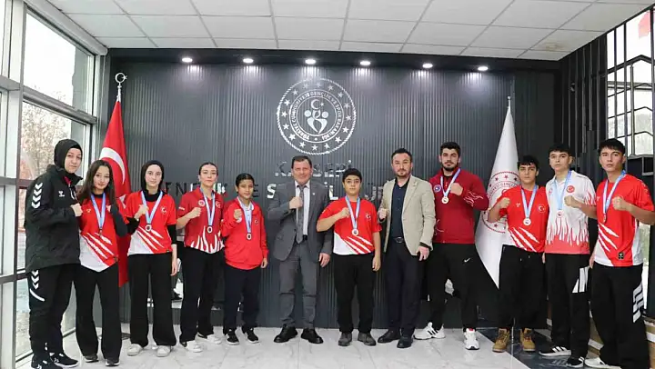 13-28 Aralık 2025 tarihleri arasında Yalova'da düzenlenen Wushu Türkiye Şampiyonası'nda mücadele eden Sağlık Erva Spor Kulübü sporcularından Fuat Kılıçaslan, Ayşegül Açık ve Eren Arı altın, Halime Çiçek ve Musa Songur gümüş, Samet Yiğit ve Rabia Gizem Gül ise bronz madalya kazandı. Şampiyona dönüşü sporcular, Erva Spor Okulları Şube Müdürü Muammer Benli ve antrenörleri ile Gençlik ve Spor İl Müdürü Ali İhsan Kabakcı'yı makamında ziyaret etti. Ziyaretten duyduğu memnuniyeti dile getiren İl Müdürü Ali İhsan Kabakcı; elde ettiği derecelerden dolayı sporcuları ve antrenörleri Nurten Kurt'u tebrik ederek, 20-22 Ocak 2026 tarihleri arasında katılacakları Wushu Milli Takım Seçmesinde başarılar diledi.