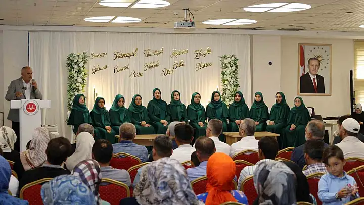 Yahyalı Hacı Ali Emine Bayansar Kız Hafızlık Kur'an Kursu'nda eğitimlerini tamamlayan 12 öğrenci hafızlıklarını tamamlayarak belge almaya hak kazandı.