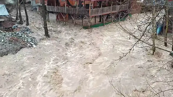 Kayseri'nin Yahyalı ilçesinde etkili olan yağışların ardından dere yatağında taşkınlar meydana geldi. Bazı evleri ve işletmeleri su basarken sele ait yeni görüntüler ortaya çıktı.