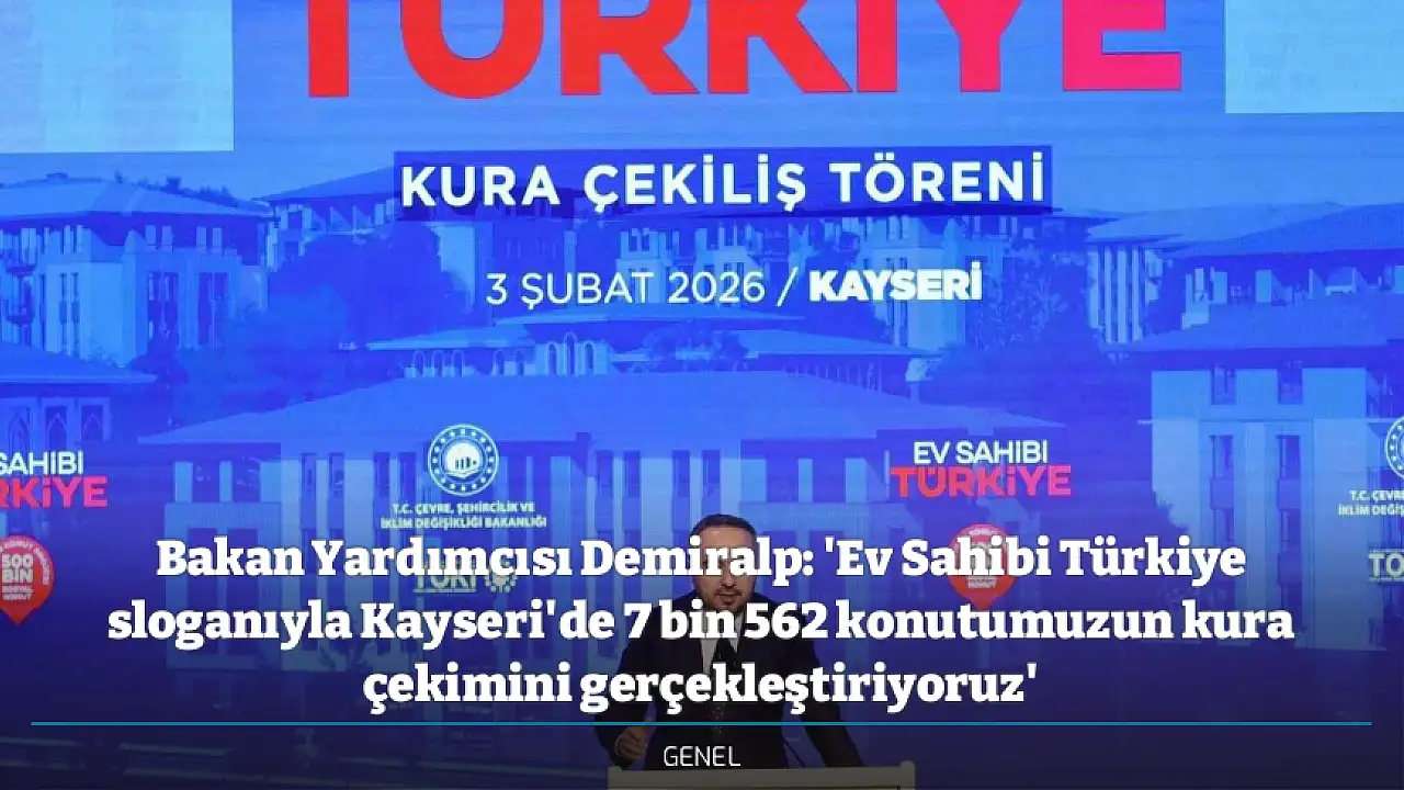 - Bakan Yardımcısı Demiralp: 'Ev Sahibi Türkiye sloganıyla Kayseri'de 7 bin 562 konutumuzun kura çekimini gerçekleştiriyoruz'