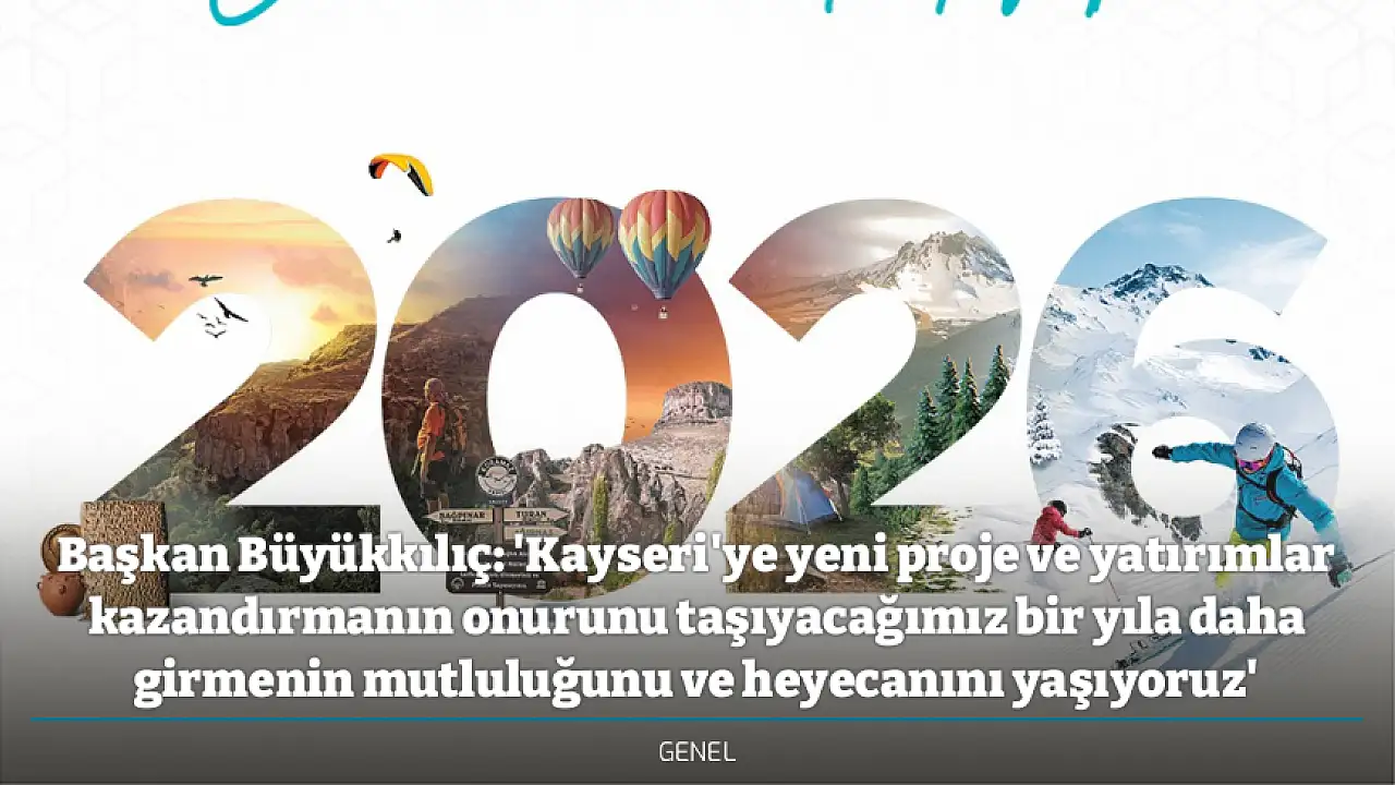 Kayseri Büyükşehir Belediye Başkanı Dr. Memduh Büyükkılıç, yeni yıl dolayısıyla yayımladığı mesajında, 2026 yılında da 'Kayseri Modeli Belediyecilik' anlayışının güçlü temelleri üzerinde Kayseri'yi daha gelişmiş, daha yaşanabilir, daha üretken bir şekilde geleceğe hazırlamak üzere eser ve hizmet siyaseti yapmaya devam edeceklerini kaydetti. Başkan Büyükkılıç, Miladi yeni yılımız ülkemiz, milletimiz ve tüm insanlık için huzura, sağlığa ve berekete vesile olsun dedi.