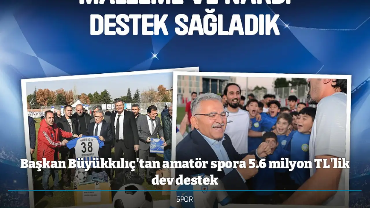 Kayseri Büyükşehir Belediye Başkanı Dr. Memduh Büyükkılıç, son 6 yılı aşkın sürede amatör spor kulüplerine toplam 5 milyon 612 bin 385 TL'lik malzeme ve nakdi destek sağlayarak, Kayseri'yi sporun merkezi yapma hedefinde kararlılığını bir kez daha ortaya koydu.