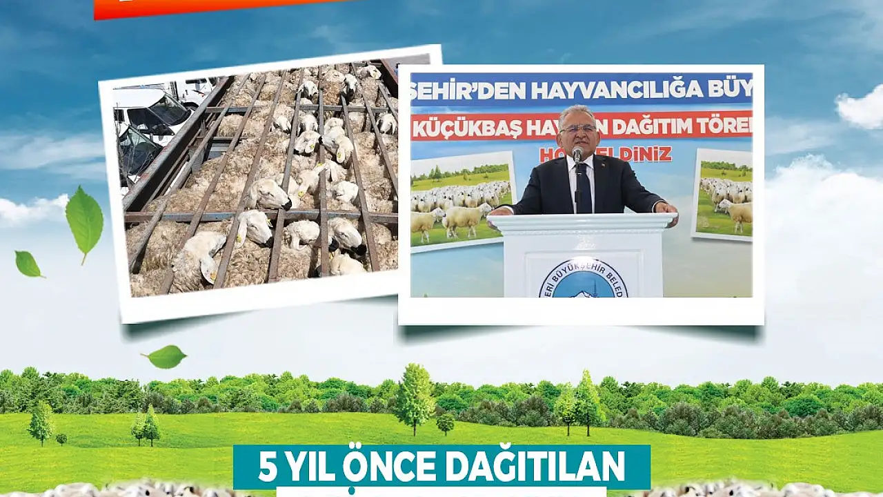 Kayseri Büyükşehir Belediye Başkanı Dr. Memduh Büyükkılıç'ın kırsalda vizyoner projesi 'Koyunlar Artıyor, Meralar Şenleniyor' kapsamında 5 yıl önce dağıtılan 4 bin 300 koyunla yaklaşık 150 bin başlık küçükbaş artışı sağlandı.