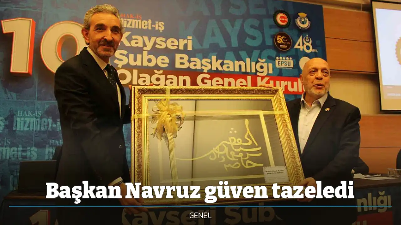 Genel kurulda Navruz yeniden Hizmet - İŞ Kayseri Şube Başkanlığı’na seçildi.