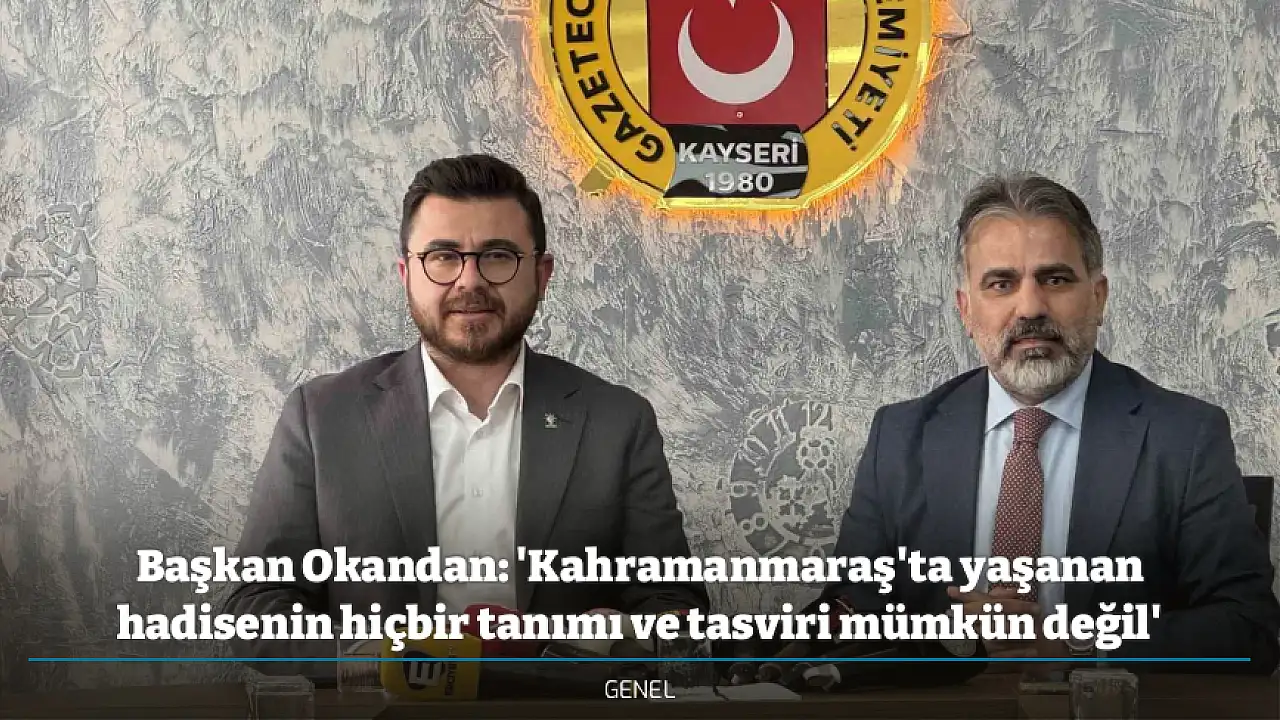 AK Parti Kayseri İl Başkanı Hüseyin Okandan, Kayseri Gazeteciler Cemiyeti (KGC) önceki dönem başkanı Veli Altınkaya’nın ölüm yıldönümü dolayısıyla gerçekleştirilen ziyarette yaptığı açıklamasında, Kahramanmaraş’ta yaşanan olayda hayatını kaybedenlere rahmet dileyerek, "Yaşanan hadisenin hiçbir tanımı ve tasviri mümkün değil" dedi.