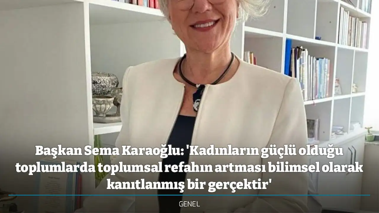 - Başkan Sema Karaoğlu: 'Kadınların güçlü olduğu toplumlarda toplumsal refahın artması bilimsel olarak kanıtlanmış bir gerçektir'
