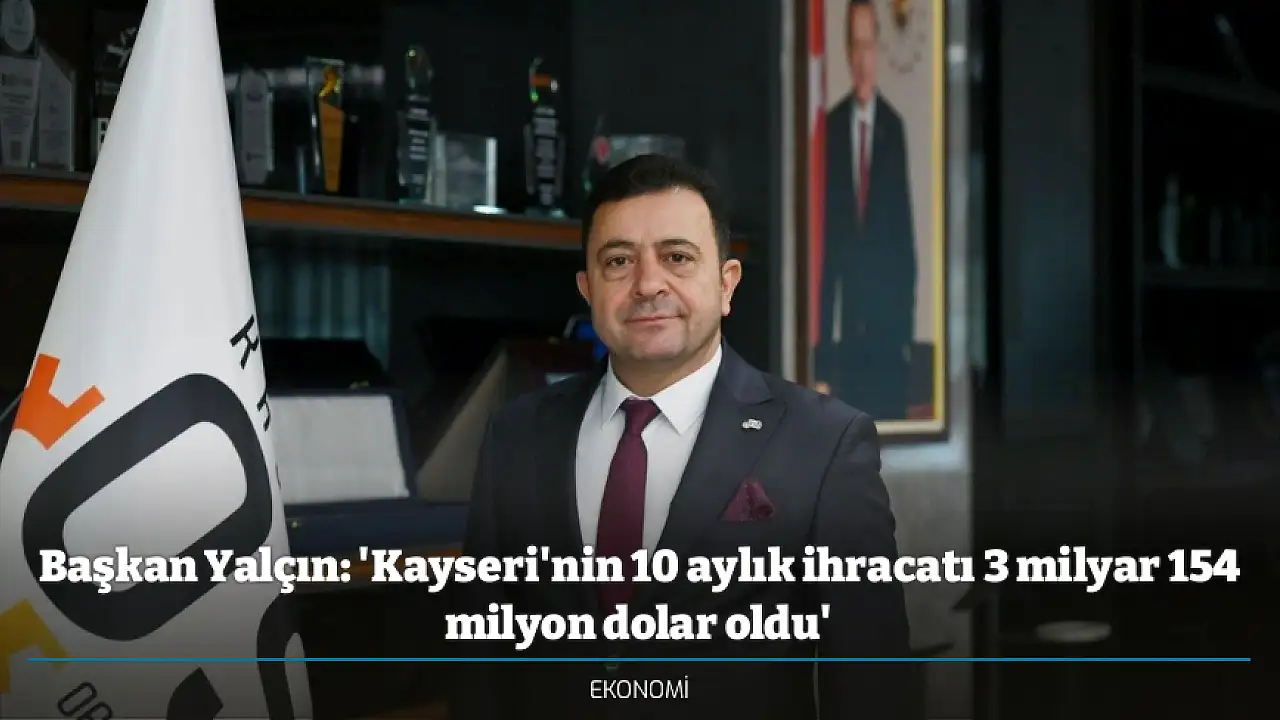 Başkan Yalçın, "Kayseri’nin ihracatı bir önceki aya göre yüzde 5,9 oranında artarak 341 milyon 762 bin dolar oldu. Kayseri’nin 2025 yılı ilk 10 aylık ihracatı 3 milyar 154 milyon 265 bin dolar seviyesine ulaştı" dedi.