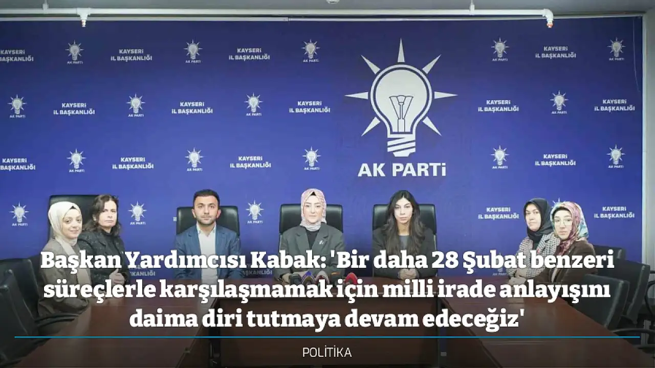 - Başkan Yardımcısı Kabak: 'Bir daha 28 Şubat benzeri süreçlerle karşılaşmamak için milli irade anlayışını daima diri tutmaya devam edeceğiz'