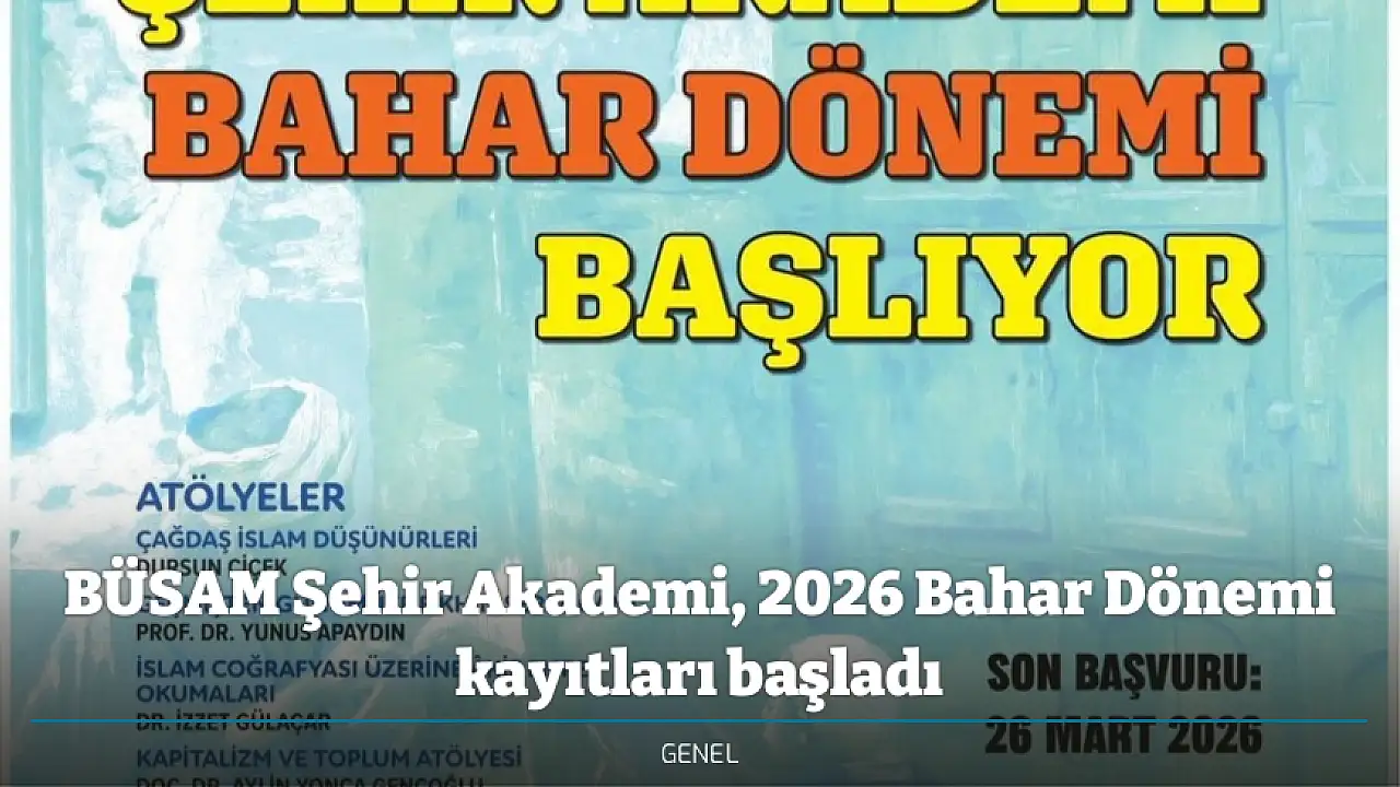 Kayseri Büyükşehir Belediyesi öncülüğünde şehrin düşünce ve fikir hayatına katkı sağlamak amacıyla faaliyetlerini yürüten BÜSAM'ın, Şehir Akademi Bahar Dönemi başlıyor. Çeşitli atölye ve seminerlerin yer aldığı akademiye kayıtlar için son tarih 26 Mart 2026 olarak belirlendi.