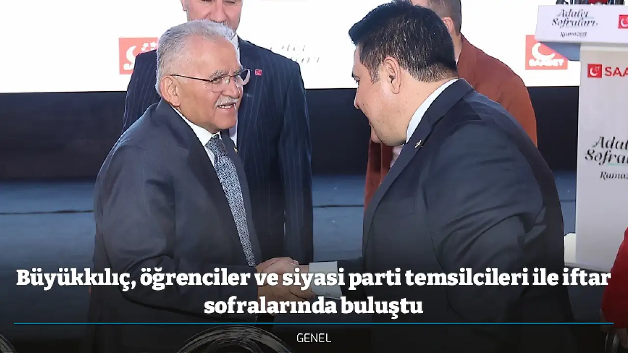 Kayseri Büyükşehir Belediye Başkanı Dr. Memduh Büyükkılıç, Ramazan ayının 21'inci gününde ERÜ öğrencileri ile gönül sofrasında bir araya geldi. Saadet Partisi İl Başkanlığı'nın düzenlediği iftar programına da katılan Başkan Büyükkılıç, siyasi parti temsilcileri ve STK temsilcileriyle iftar yaptı.
