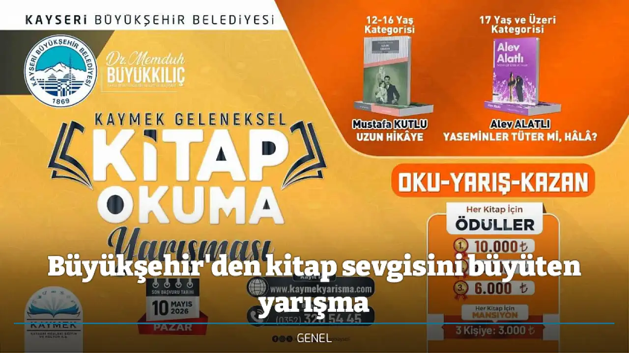 Kayseri Büyükşehir Belediyesi bünyesindeki KAYMEK A.Ş., geleneksel hale getirdiği kitap okuma yarışmasıyla gençleri ve yetişkinleri okuma kültürü etrafında buluşturuyor. İki ayrı kategoride düzenlenecek yarışmada toplamda 66 bin TL'lik ödül dağıtılacak.