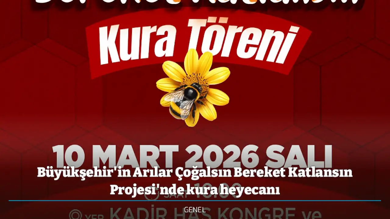 "Arılar Çoğalsın, Bereket Katlansın" Projesi kura çekimi, 10 Mart Salı günü saat 10.00’da Kadir Has Kültür Merkezi’nde düzenlenecek. Kura çekimi aşağıda yer alan Büyükşehir Belediyesi Youtube adresinden canlı olarak yayınlanacak. Çekilecek kura ile belirlenen 750 hak sahibi vatandaşa kişi başı 2 adet arılı kovan olmak üzere proje kapsamında toplam 1500 adet arı kolonisi, arıcılık alanında üreticilik yapan ve üretici olmak isteyen vatandaşlara destek olarak dağıtılacak.