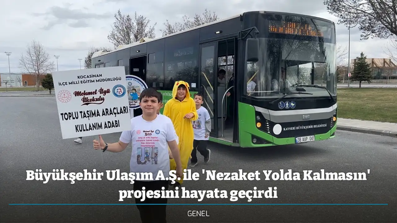 Kayseri'de öğrencilerin toplu taşıma araçlarını güvenli, bilinçli ve saygılı bir şekilde kullanmalarını sağlamak amacıyla önemli bir eğitim projesi hayata geçirildi. Kayseri Büyükşehir Belediyesi Ulaşım A.Ş. ile Kocasinan İlçe Milli Eğitim Müdürlüğü iş birliğinde yürütülen 'Nezaket Yolda Kalmasın' projesi kapsamında Toplu Taşıma Nezaket Kuralları Eğitimi'nin ilk uygulaması gerçekleştirildi.