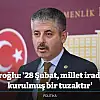 Açıklamasının sonunda kararlılık mesajı veren Çopuroğlu; "Millet iradesinin üzerinde hiçbir güç yoktur. Demokrasi dışı tüm müdahaleleri bir kez daha kınıyor, benzer karanlık senaryoların bir daha yaşanmaması için milli iradeye sahip çıkmaya devam edeceğimizi vurguluyoruz" ifadelerine yer verdi.