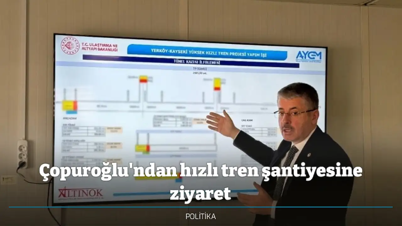 AK Parti Kayseri Milletvekili Şaban Çopuroğlu, yapımı devam eden Yerköy-Kayseri Yüksek Standartlı Demiryolu kapsamında sürdürülen çalışmaları yerinde incelemek üzere hızlı tren şantiyesini ziyaret etti.