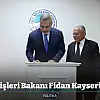 Kayseri Havaalanı’na iniş yapan Dışişleri Bakanı Hakan Fidan, ilk olarak Kayseri Valisi Gökmen Çiçek’i ziyaret etti. Kayseri Valiliği’nin şeref defterini imzalayan Bakan Fidan, burada bir süre Vali Çiçek ile görüştü. Ardından Kayseri Büyükşehir Belediye Başkanı Dr. Memduh Büyükkılıç’a nezaket ziyaretinde bulunan Fidan’a Büyükkılıç tarafından belediyenin çalışmaları hakkında bilgiler verildi.