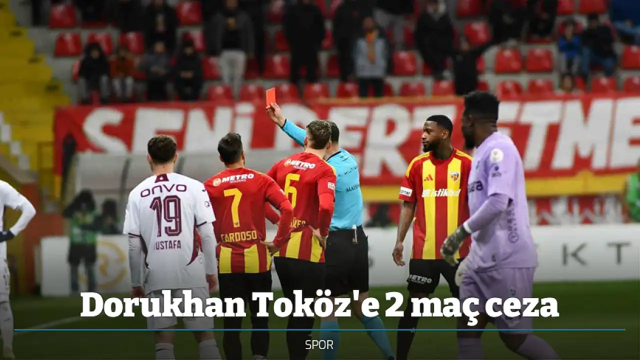 Süper Lig ekiplerinden Kayserispor'un orta saha oyuncusu Dorukhan Toköz, PFDK'dan 2 maç ceza aldı.