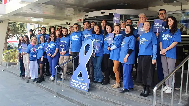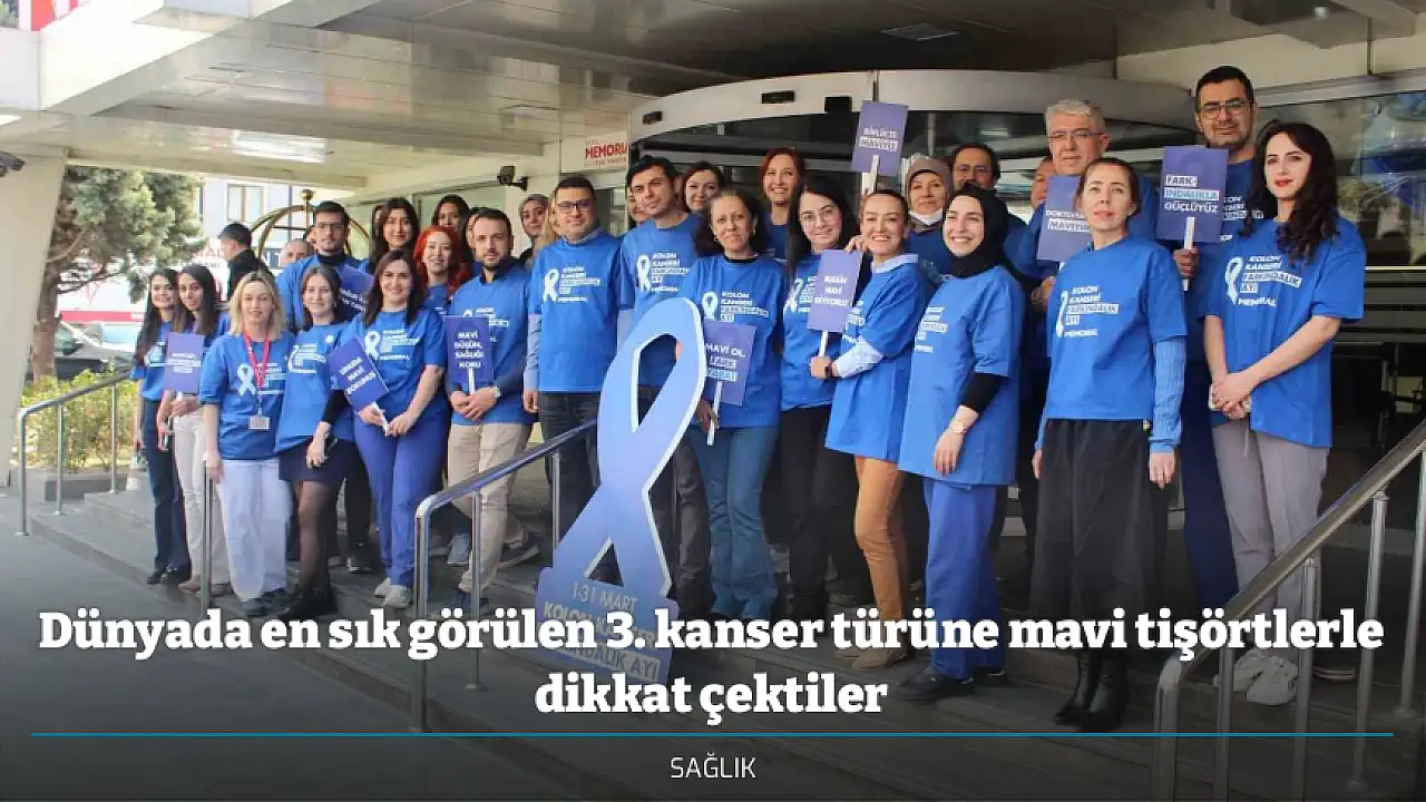 Memorial Kayseri Hastanesi'nde 1-31 Mart Kolon Kanseri Farkındalık Ayı dolayısıyla sağlık çalışanları hastalığa dikkat çekmek amacıyla mavi tişört giydi.