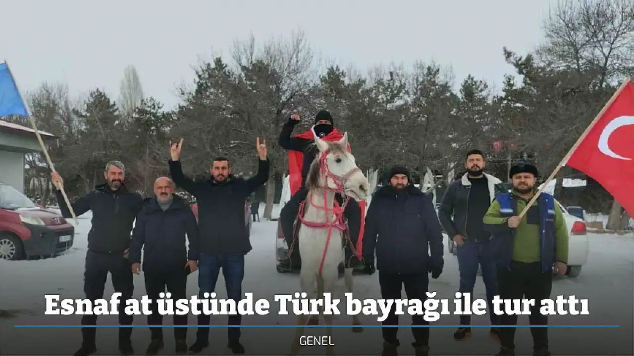 Esnaf at üstünde Türk bayrağı ile tur attı