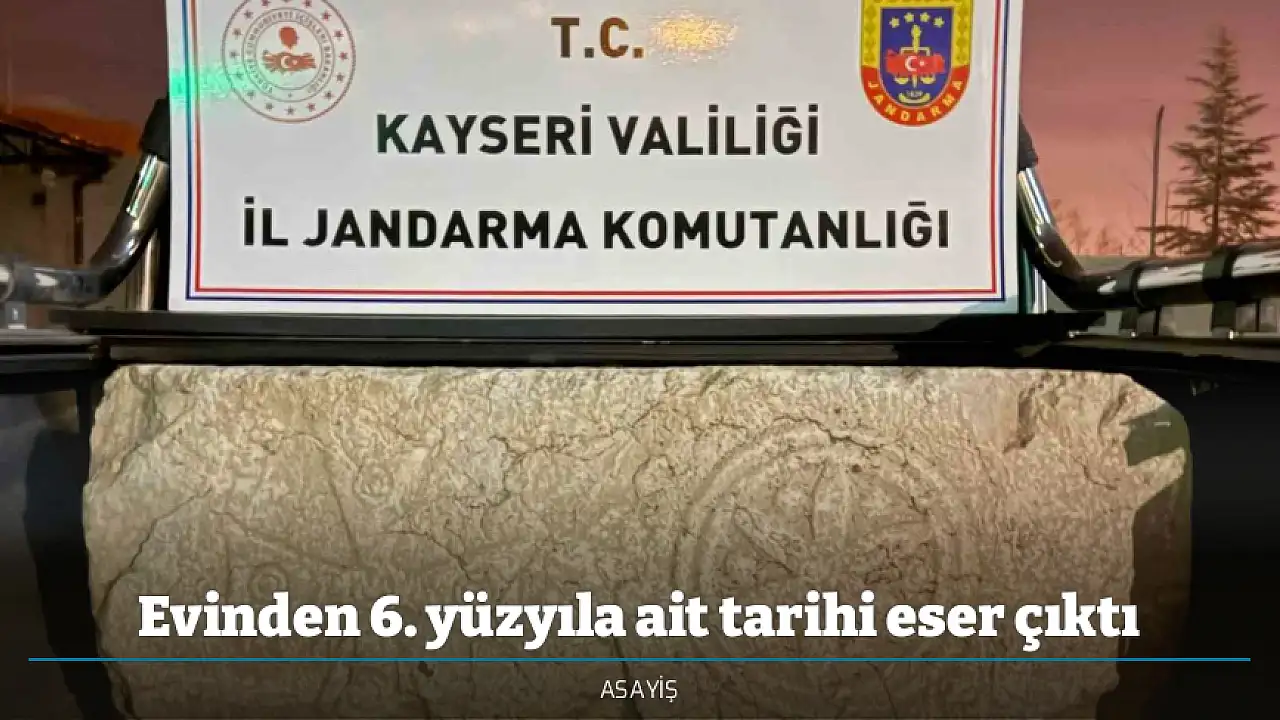 Kayseri'nin Yahyalı ilçesinde jandarma ekipleri tarafından yapılan çalışmalarda bir kişinin evinden VI. yüzyıla ait kapı sovesi ele geçirildi.