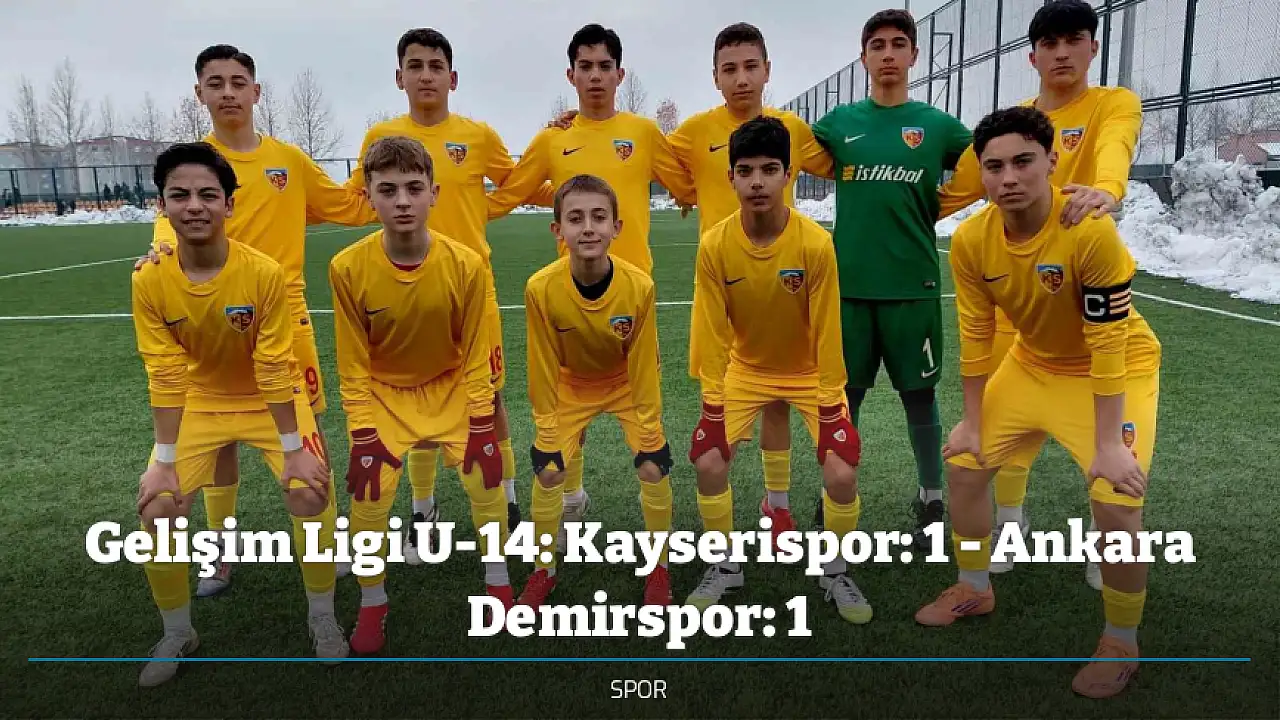 Gelişim Ligi U-14 Kategorisi 12. Grup'ta oynanan 15. hafta maçında Kayserispor ilk yarısını 1-0 önde kapattığı maçta Ankara Demirspor ile 1-1 berabere kaldı.