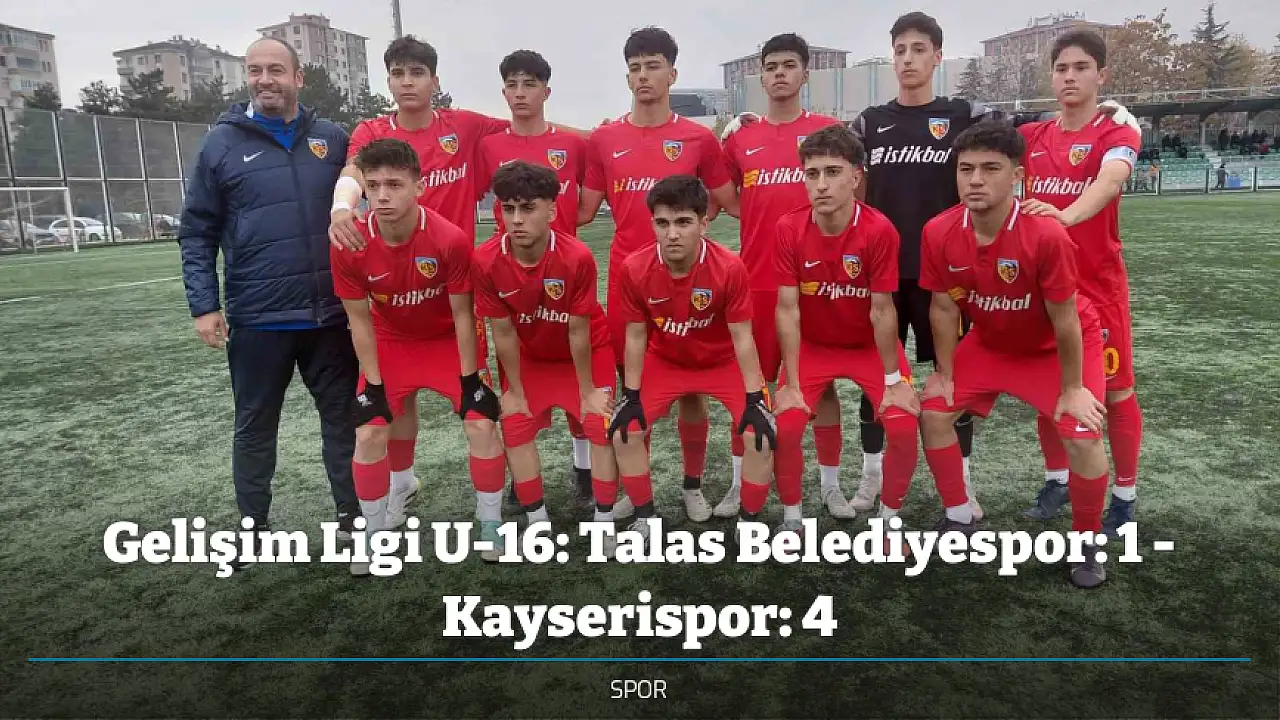 Gelişim Ligi U-16 Kategorisi 8. Grup'ta oynanan ligin 11. haftası Kayseri derbisine sahne oldu. Talas Belediyespor ile Kayserispor SümerStadı'nda karşı karşıya gelirken kazanan 4-1'lik sonuç ile Kayserispor oldu.