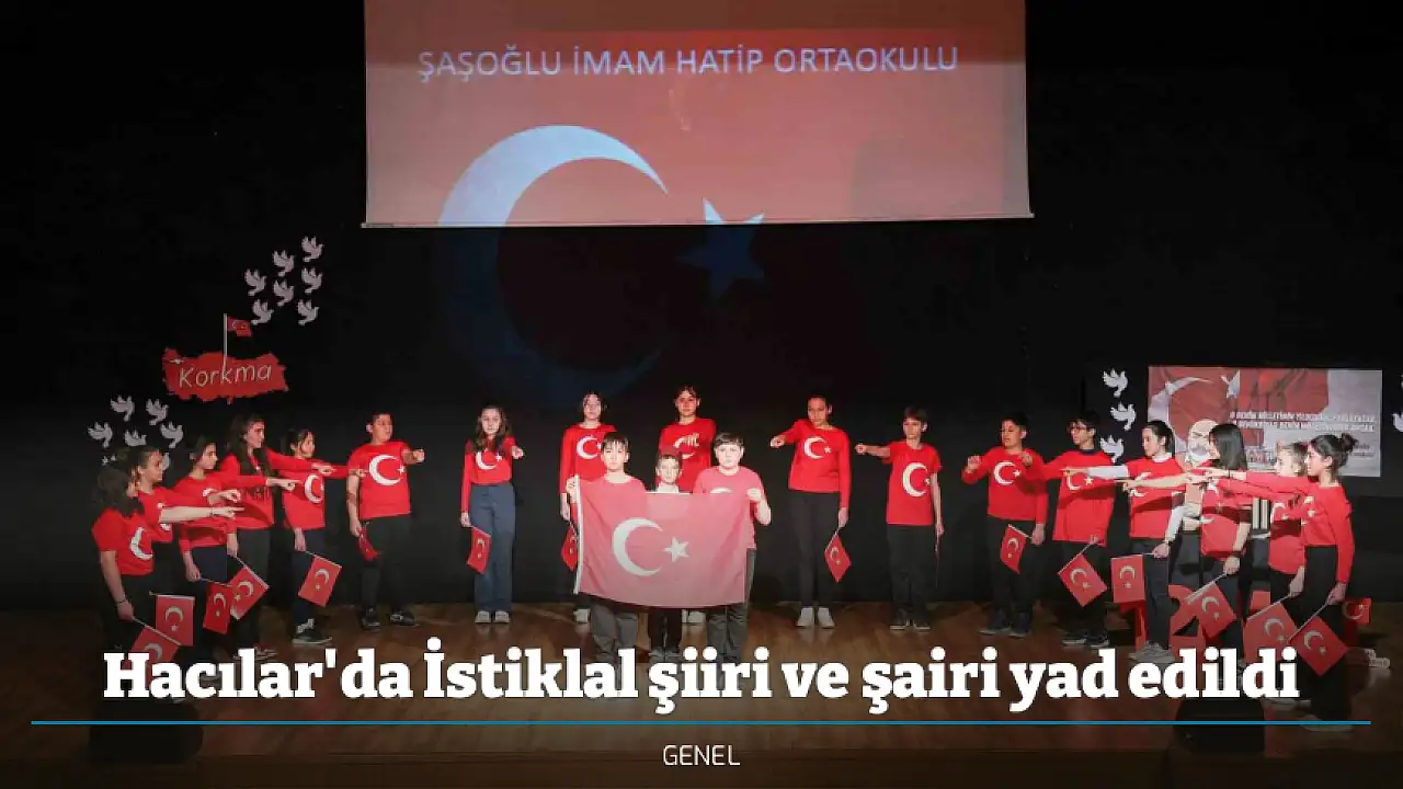 Şaşoğlu İmam Hatip Ortaokulu tarafından hazırlanan anma programına; Hacılar Kaymakamı Cüneyt Caner, Hacılar Belediye Başkanı Bilal Özdoğan, ilçe protokolü, öğretmenler ve öğrenciler katıldı. Program; saygı duruşunda bulunulması ve İstiklâl Marşı’nın okunmasıyla başladı. Günün anlam ve önemini belirten konuşmaların ardından öğrenciler tarafından şiirler okundu, sinevizyon gösterileri sunuldu, tiyatro ve müzikli gösteriler sahnelendi. Öğrencilerin hazırladığı performanslar salondan büyük alkış aldı. Program sonunda değerlendirmelerde bulunan Başkan Bilal Özdoğan, İstiklâl Marşı’nın milletimizin bağımsızlık karakterini en güçlü şekilde yansıttığını belirterek şu ifadeleri kullandı;