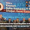 Kadir Has Kongre Merkezi’nde yapılan Hizmet - İŞ Sendikası Kayseri Şubesi’nin 10. Olağan Genel Kurulu; divan heyetinin oluşturulmasıyla başladı. Ardından saygı duruşunda bulunulması ve İstiklal Marşı’nın okunmasıyla devam eden genel kurula katılan Hak-İş Konfederasyonu Genel Başkanı ve Hizmet-İş Sendikası Genel Başkanı Mahmut Arslan üyelere seslendi. Vergi sisteminde adaletsizlik olduğunu savunan Başkan Arslan; "HAK-İŞ olarak Kayseri’de bir miting gerçekleştirmiştik, bu mitingin amacı şuydu; emeklilik sistemi başta olmak üzere vergi sistemimizi ve başka sorunlarımızı gündeme getirerek kamuoyu oluşturmak adına Kayseri, Gaziantep, Kocaeli gibi illerde büyük mitinglere imza atmıştık. Vergi bir vatandaşlık borcudur, vergi vermekten asla şikayetçi değiliz. Vergimizi verirsek devlet oluruz, vergi varsa bir devlet vardır. Biz vergi vermekten şikayetçi değiliz. Ama çok kazananın az verdiği, az kazananın çok vergi verdiği bir sisteme itiraz ediyoruz. Verginin adil olması gerekiyor. Bizim vergi sistemimizde ne yazık ki ciddi bir sorun var. Bu sorunların çözümü için HAK-İş ciddi çalışmalar yaptı. En son Maliye Bakanımız ile yaptığımız görüşmelerde bu hususun bir kere daha altını çizdik ve bunun değişmesini istedik. 2002 yılında bir asgari ücretli 17 ay çalıştıktan sonra yüzde 20 dilime giriyordu, yani 1 yıl yüzde 15’ten çalışmaya devam ediyordu. Vergi dilimlerindeki makas bayağı bir genişti. Bugün asgari ücretliden vergi alınmış olsa 5 ay sonra yüzde 20 dilime giriyor. Asgari ücretten yüksek alan vatandaşlarımız ki kamuda çalışanlarımız da öyle 4. aydan itibaren yüzde 20 dilime giriyor. Ocak ayında 100 TL’miz bu sistem içerisinde Aralık ayına gelindiği zaman 75 TL’ye düşüyor. Ücretimiz aşağı çekiliyor. Çünkü vergi dilimlerindeki makas çok kısa. Büyük bir haksızlık yaşıyoruz. Verginin bütün yükünü çalışanlara, ücretlilere yıkmak adil değil" dedi.