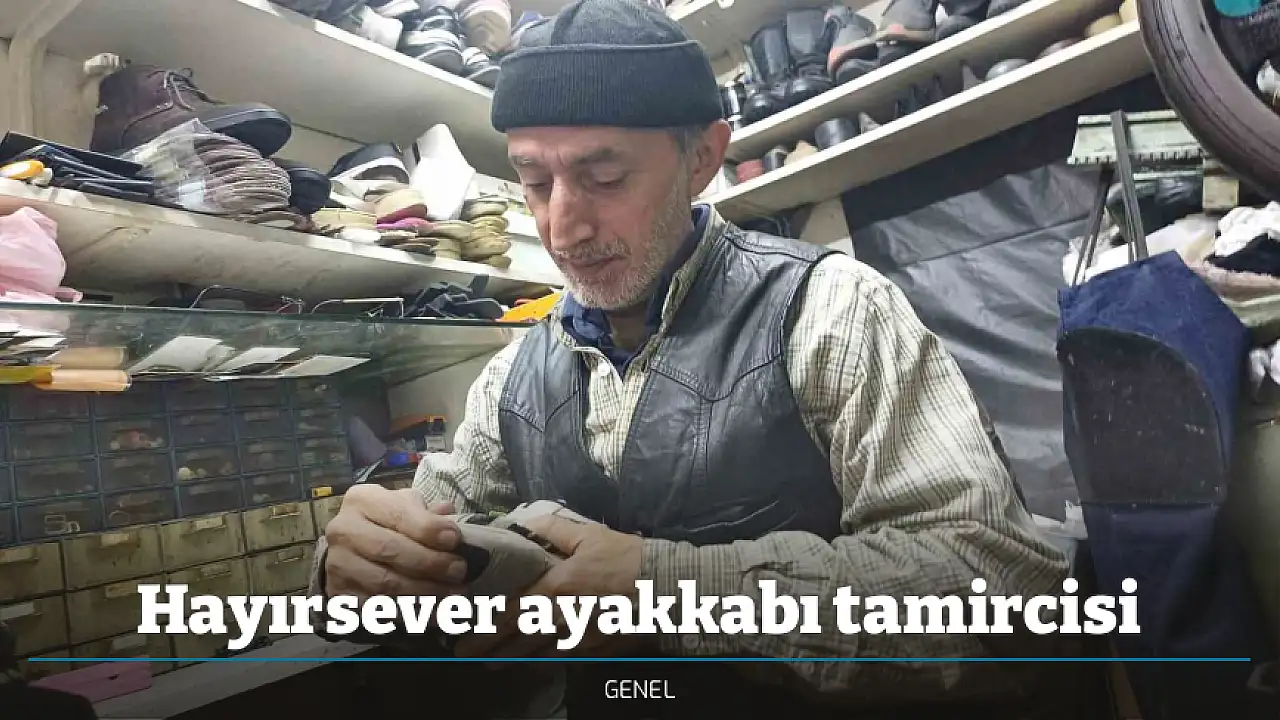 Kayseri'de 60 yaşındaki ayakkabı tamircisi, hayırseverlerin getirmiş olduğu ayakkabıları tamir edip ihtiyaç sahibi insanlarla buluşturuyor.