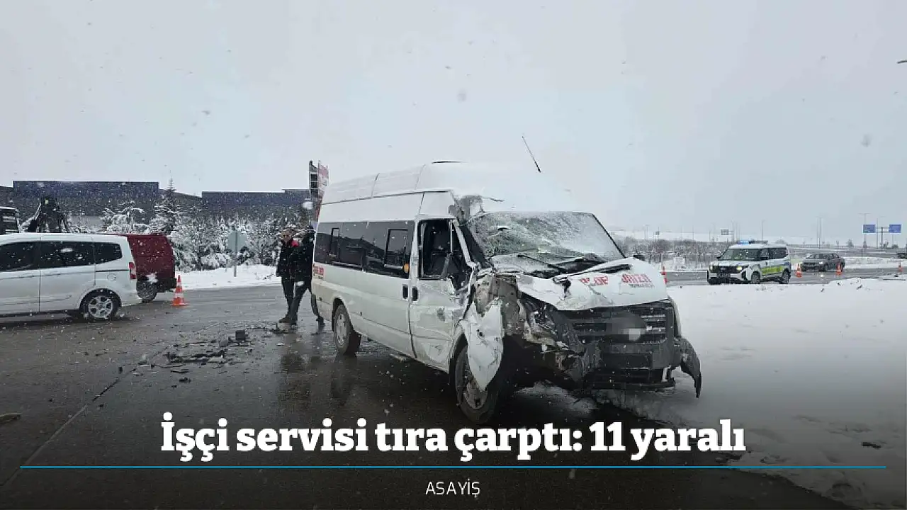 Kayseri'nin Melikgazi ilçesinde işçi servisinin iddiaya göre, ana yola kontrolsüz çıkan tıra çarptığı kazada 11 kişi yaralandı.