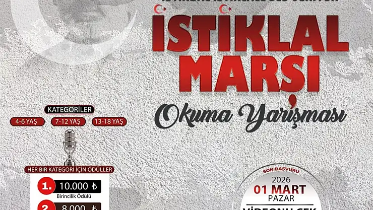 Başkan Dr. Memduh Büyükkılıç’ın öncülüğünde çalışmalarını sürdüren Büyükşehir Belediyesi, çocuklar ve gençler başta olmak üzere toplumun her kesimine hitap eden kültürel ve sosyal faaliyetlerle, Türk milleti için özel anlam taşıyan günlerde Kayserilileri bir araya getiren etkinlikler gerçekleştirmeyi sürdürüyor. Kayseri’de mesleki eğitim ve kültür alanında binlerce insana dokunan Büyükşehir Belediyesi bünyesindeki Kayseri Mesleki Eğitim ve Kültür A.Ş. (KAYMEK) tarafından düzenlenen "İstikbal, İstiklâl’e Ses Veriyor" İstiklâl Marşı Okuma Yarışması ile 4-6 yaş, 7-12 yaş ve 13-18 yaş kategorilerinde çocuk ve gençler, bağımsızlığımızın sembolü olan İstiklâl Marşı’nı yürekten seslendirecek. Yarışma kapsamında katılımcılar, isimlerini ifade ettikten sonra İstiklâl Marşı’nı fon müziği ve ritim olmaksızın, yalnızca şiir diliyle okuyarak milli mücadele ruhuna duydukları saygıyı ortaya koyacak. Video kayıtları profesyonel cihaz kullanılmadan MP4 veya MOV formatında hazırlanarak www.kaymekyarisma.com adresi üzerinden sisteme yüklenecek. Türk milletinin bağımsızlık ve hürriyet mücadelesinin simgesi olan İstiklâl Marşı’nı nesilden nesile aktarmayı amaçlayan yarışmada dereceye giren öğrenciler ödüllendirilecek. Birinciye 10 bin TL, ikinciye 8 bin TL, üçüncüye 6 bin TL, ayrıca 3 adet 3 bin TL mansiyon ödülü takdim edilecek. Yarışmaya başvurular, 1 Mart 2026 Pazar günü saat 23.59’a kadar sürecek. Yarışma hakkında detaylı bilgiye 0352 320 54 45 telefon numarasından ulaşılabilecek.