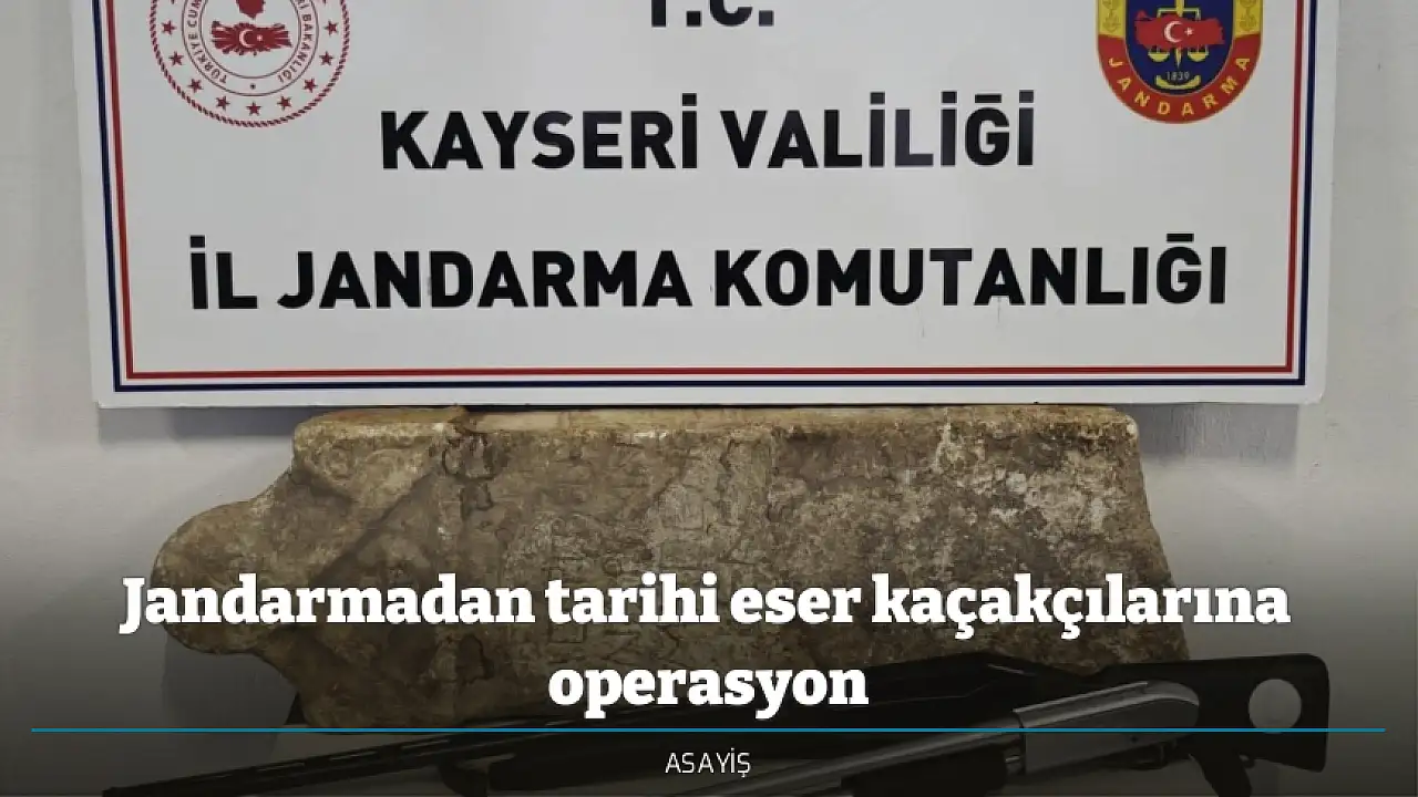 Kayseri’de jandarma ekipleri tarafından yapılan operasyonda Roma dönemi mezar steli ele geçirildi.