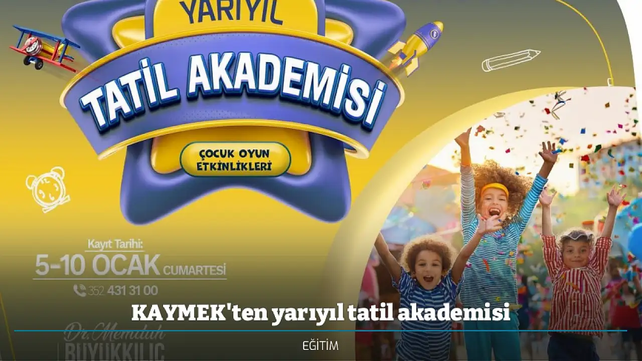 Kayseri Büyükşehir Belediyesi'nin, 2025-2026 Eğitim Öğretim Yılının 19 Ocak'ta başlayacak yarıyıl tatili için çocuklara yönelik olarak düzenleyeceği Yarıyıl Tatil Akademisi için kayıtlar sürüyor.