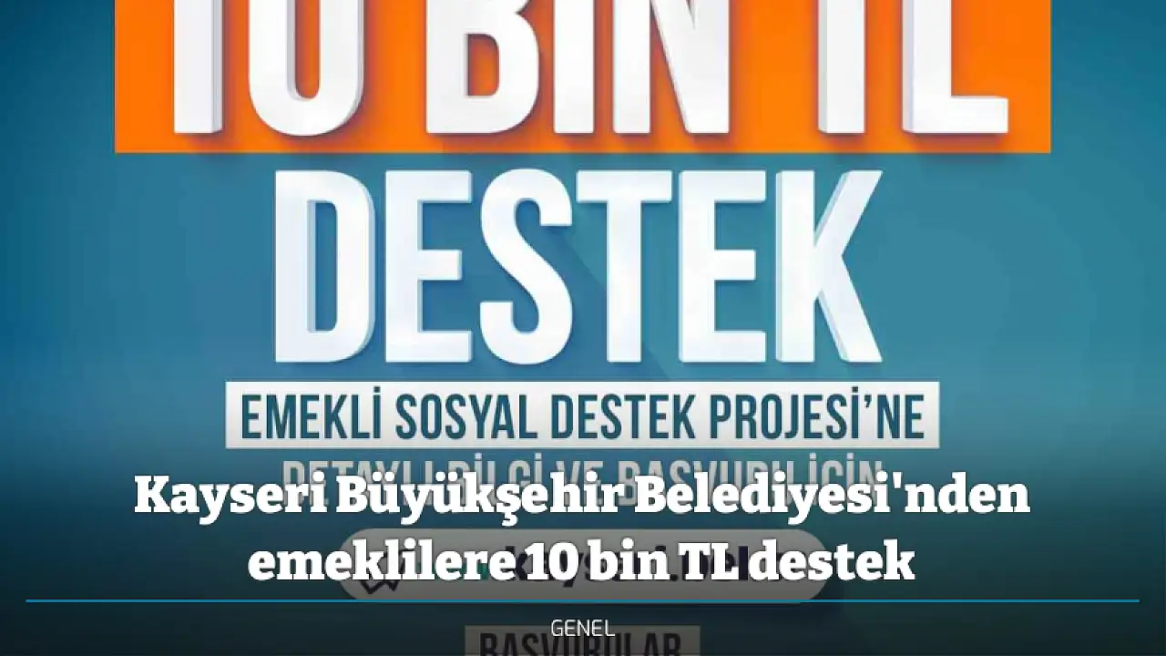 Kayseri Büyükşehir Belediyesi, dar gelirli emeklilere yönelik 10 bin TL'lik nakdi sosyal destek programını hayata geçiriyor. Başkan Dr. Memduh Büyükkılıç'ın öncülüğündeki proje kapsamında başvurular 17-26 Nisan tarihleri arasında online alınacak.