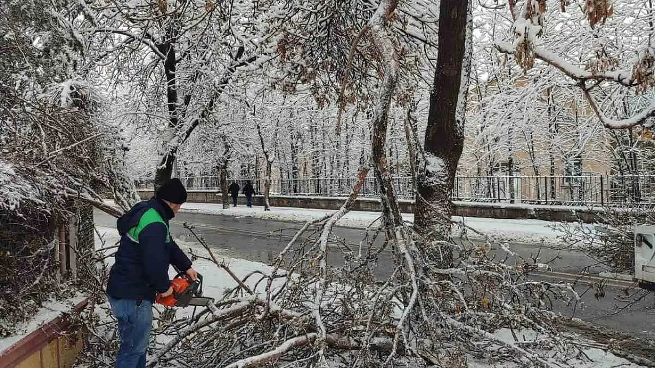 Kayseri Büyükşehir Belediyesi, kar yağışının ardından zarar gören ağaç ve dalların oluşturabileceği risklere karşı şehir genelinde kapsamlı bir çalışma başlatarak, yaya ve araç güvenliğini sağlıyor.