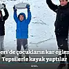 Kayseri’de yoğun kar yağışı hayatı olumsuz etkilerken, sokaklar çocuklar için oyun parkı oldu. Kar yağışıyla birlikte parklardaki oyun alanlarını tercih etmeyen çocuklar, kar topu oynayarak ve karda kayarak, karın tadını çıkarttı. Yolların kar ile dolması sonrası kızaklar ve pasta tepsisi alan çocuklar, saatlerce keyifle oynadı.