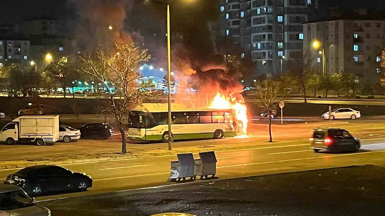 Kayseri'de halk otobüsü alev aldı