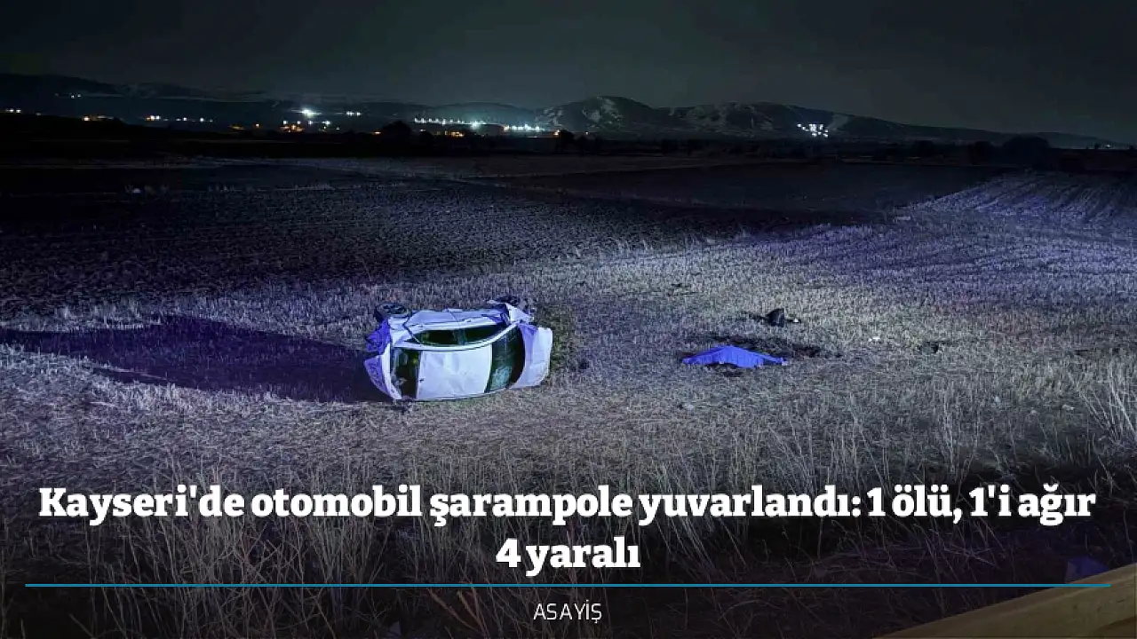 Kayseri-Malatya Karayolu'nda kontrolden çıkan otomobil şarampole yuvarlanırken, kazada 1 kişi hayatı kaybetti, 1'i ağır 4 kişi yaralandı.